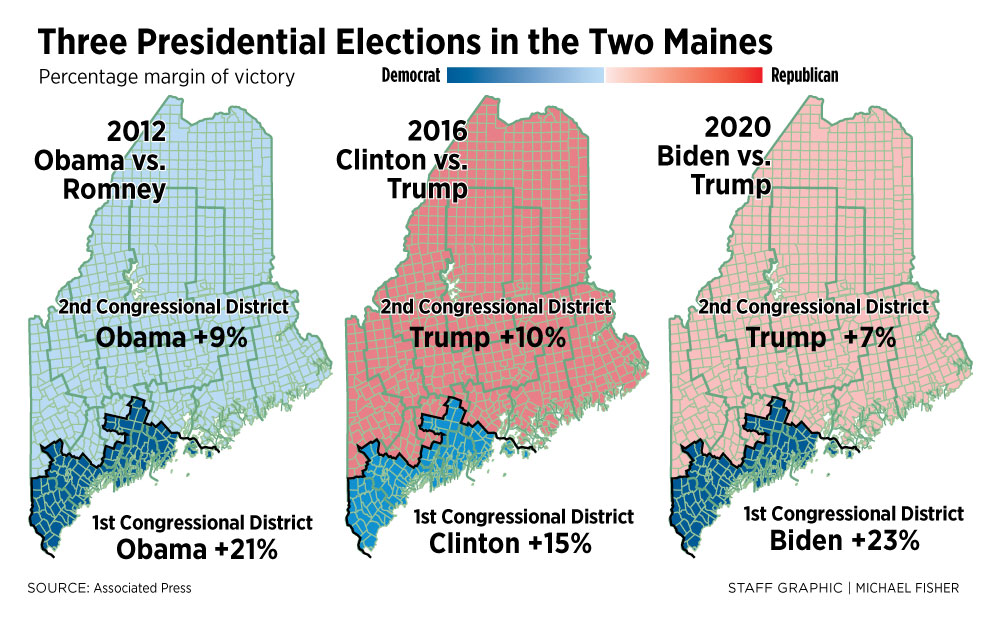 The ‘two Maines’ disagreed again, but Trump’s support declined in both