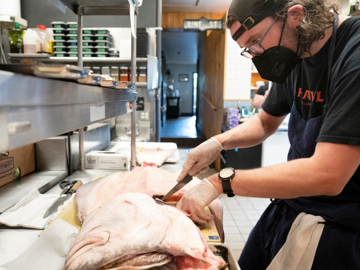 For the length of local halibut season, chef de cuisine Kirby Sholl is featuring halibut on the menu from head to rib to ‘wing.’