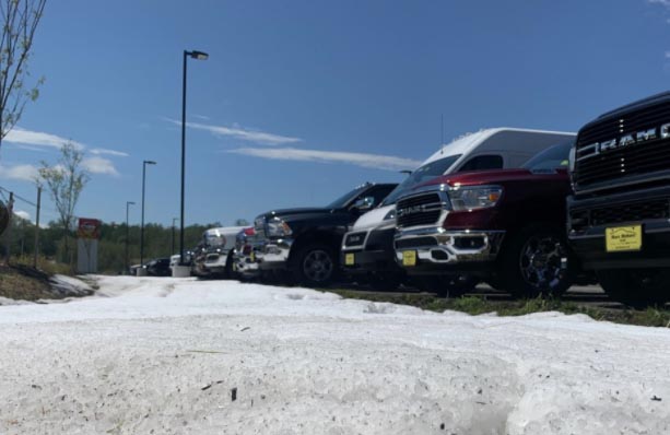 Plowable hail fell in Sanford and damaged hundreds of vehicles at an auto dealership.