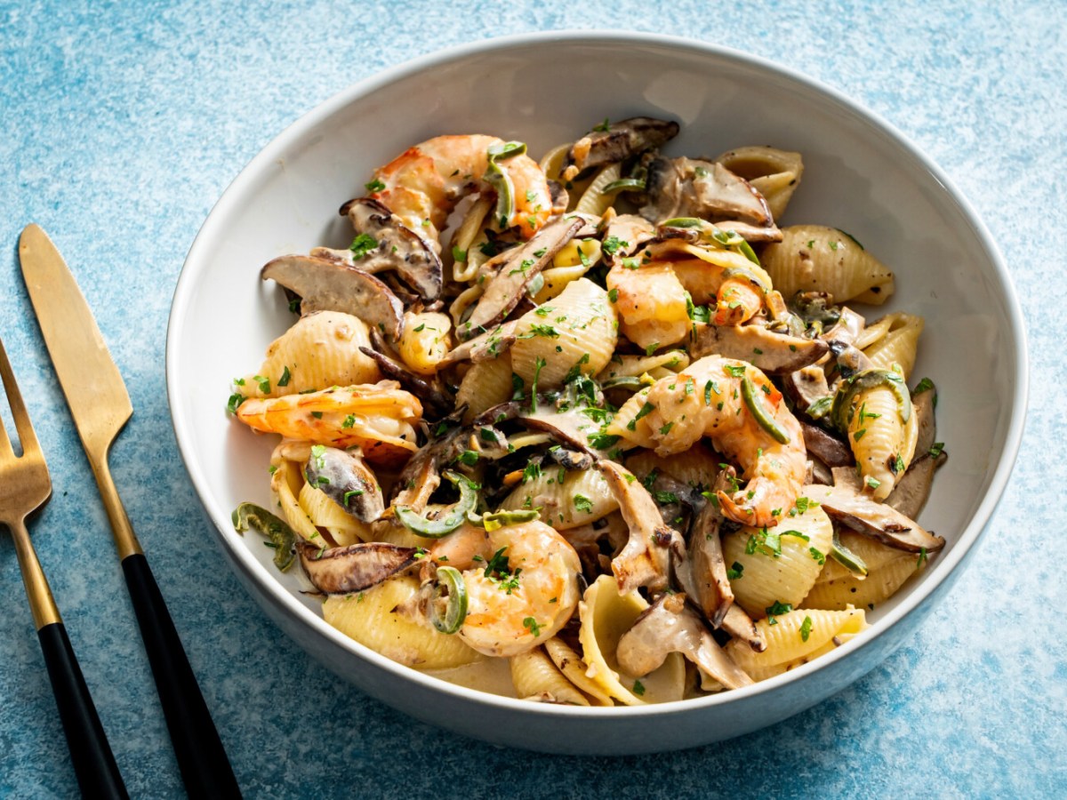 Creamy cognac mushroom sauce adds a little luxe to weeknight pasta bowls