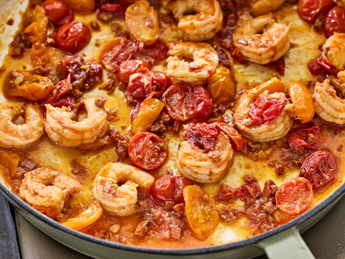 This warm and smoky shrimp salad with chorizo is a weeknight win