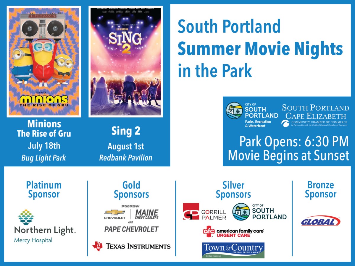 The South Portland-Cape Elizabeth Chamber of Commerce is hosting outdoor movie events on July 18 and Aug. 1 at Bug Light Park. The Summer Movie Nights in the Park schedule features “Minions: The Rise of Gru” on Tuesday, July 18 and “Sing 2” on Tuesday, Aug. 1. The Aug. 1 event will be held in […]