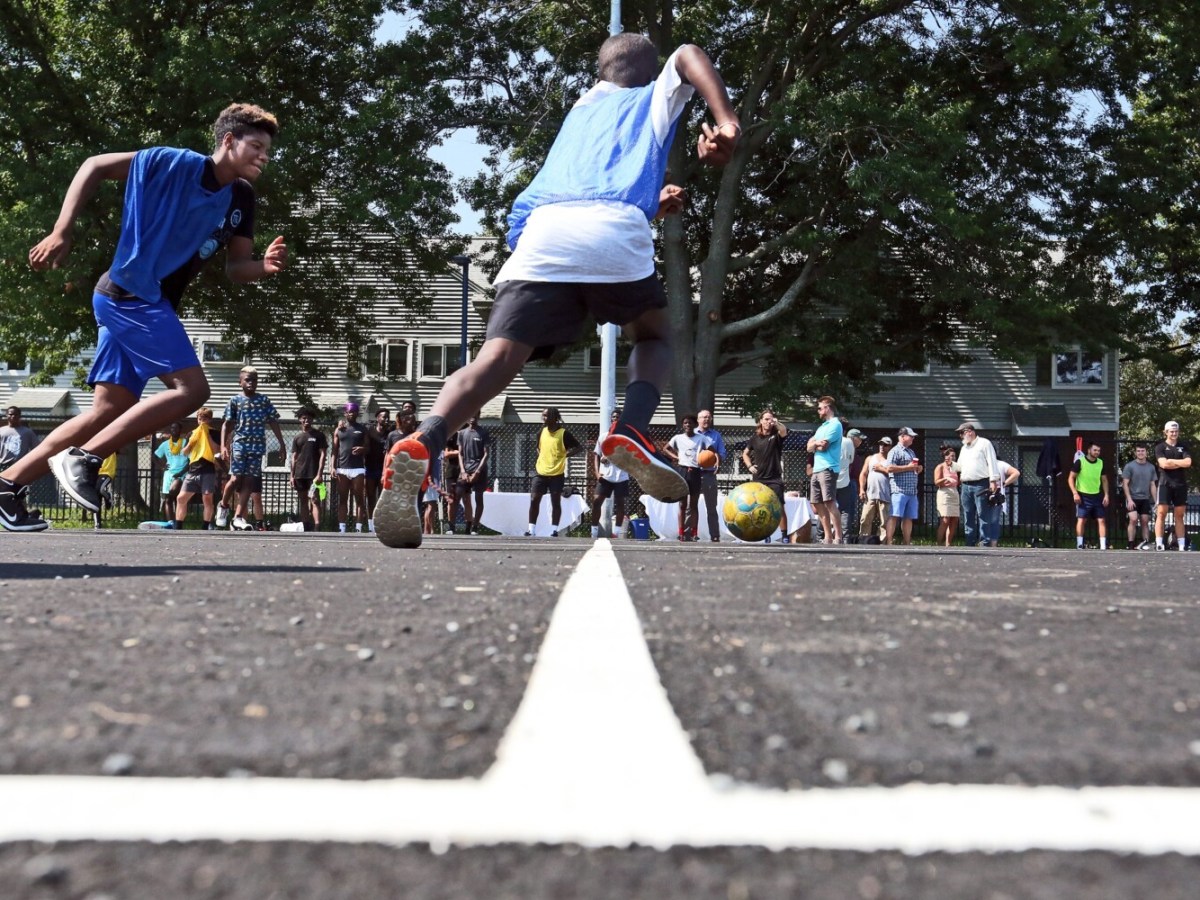 A new outdoor court is dedicated at Fox Field for futsal – a version of soccer that’s played on a hard surface with a smaller ball and five players to a side.