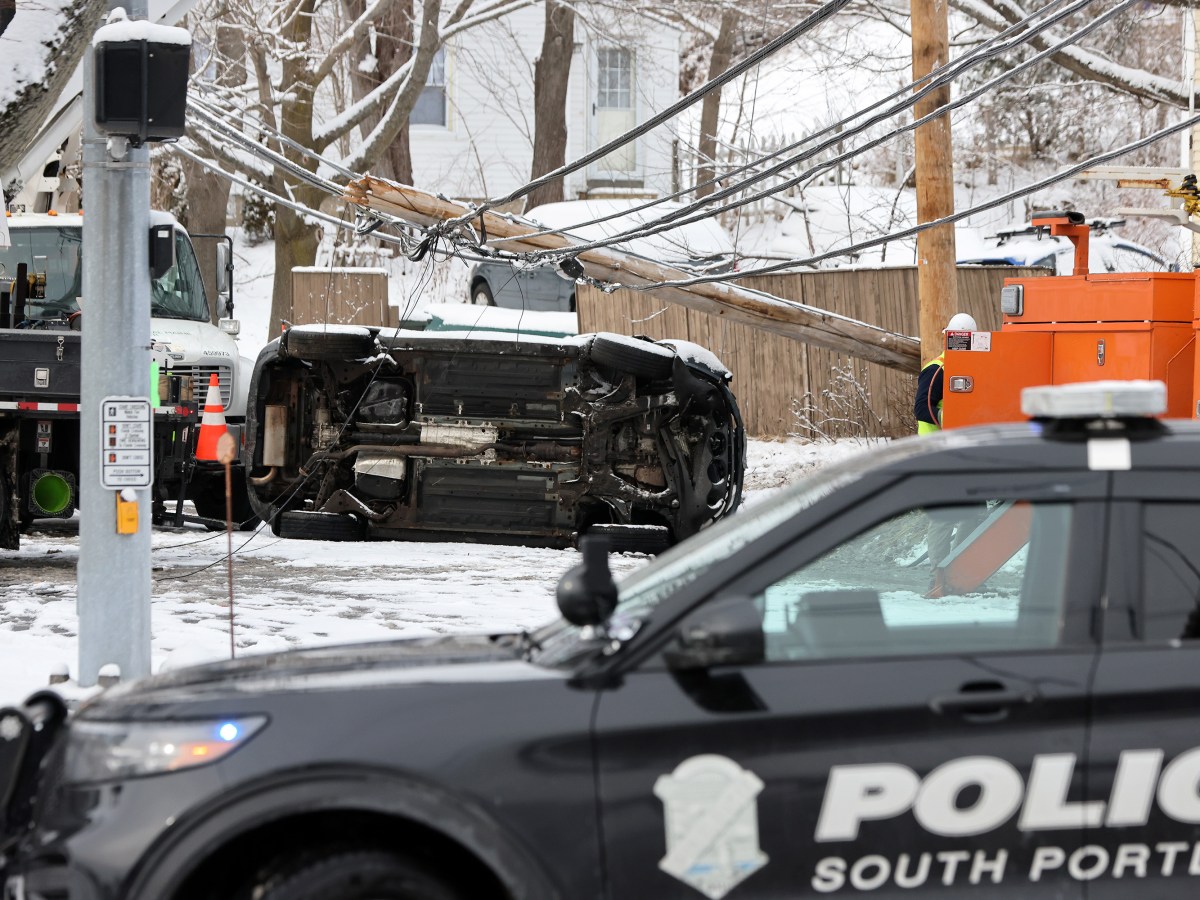 A section of Broadway in South Portland reopened around 4 p.m. after a crash early in the day brought wires down in the road.