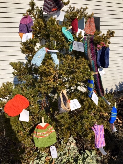 Members visit areas where they think there is a need and tie handmade winter items to fences, trees, around lamp posts, or wherever they can for people in need to take for free.