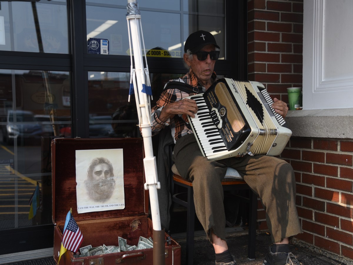 A local accordion player has become a fixture at Brackett’s Market IGA in downtown Bath. People who pass by him are hit with a wave of nostalgia for the old tunes he loves to share with locals and visitors.