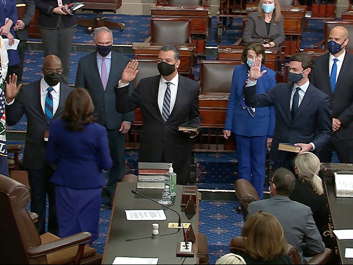 The arrival of 3 new Democratic senators gives Democrats for the first time in a decade control of the Senate, the House and the White House, as President Biden faces unparalleled challenges.