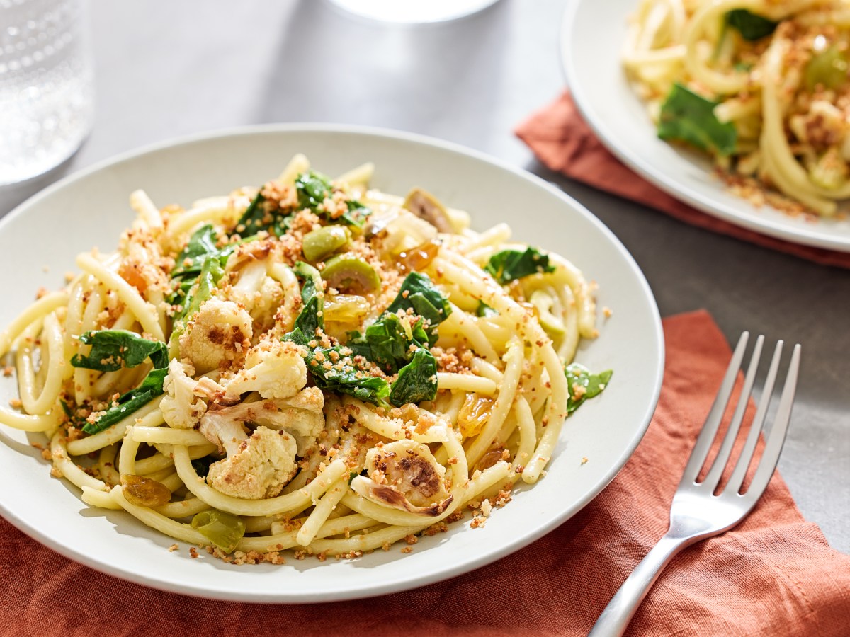 A lemony cauliflower pasta from chef Katie Reicher at Greens restaurant showcases the brilliance of California cuisine.