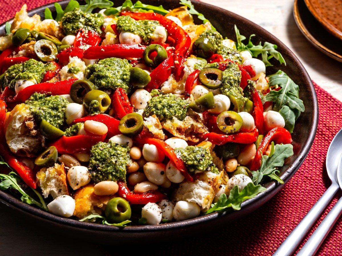 This red pepper, mozzarella and pesto salad pops with color and flavor