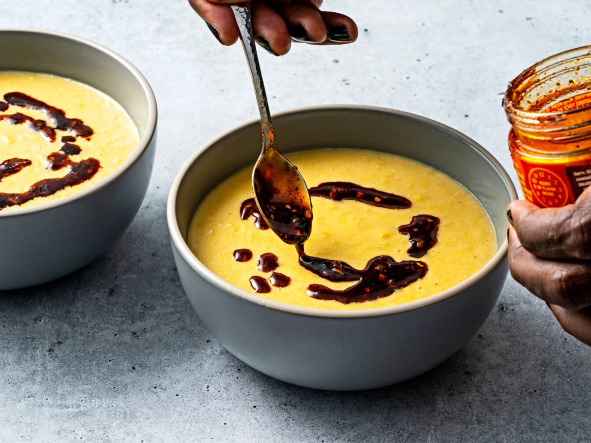 Corn soup with chili crisp is a sweet and spicy bowl of comfort