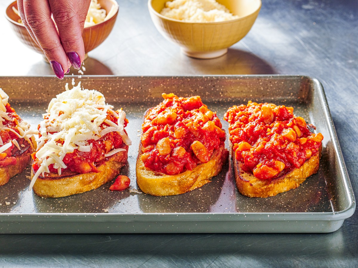 Simmer white beans in garlicky marinara, spoon them on garlic toast, add cheese and broil until melted for this riff on a beloved Smitten Kitchen recipe.