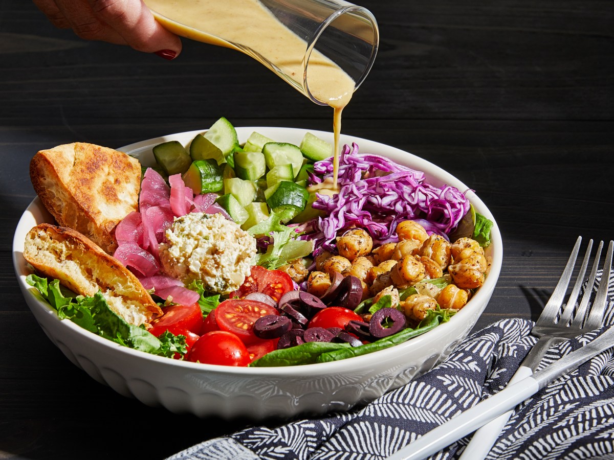 This Cava-inspired salad bowl boasts spicy feta and a date vinaigrette