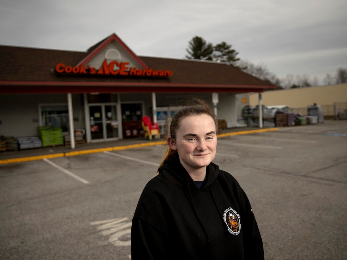 Emma Belanger, 17, of Gray keeps up with classes and homework, and the increased hours at her job as a cashier.