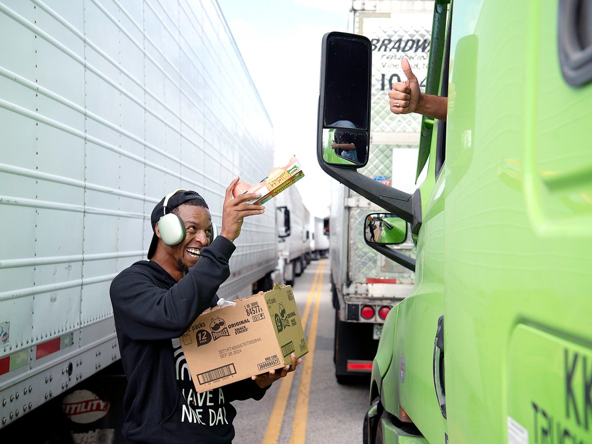 Dozens of trucks lined up outside Lewiston distribution center waiting to offload their cargo.