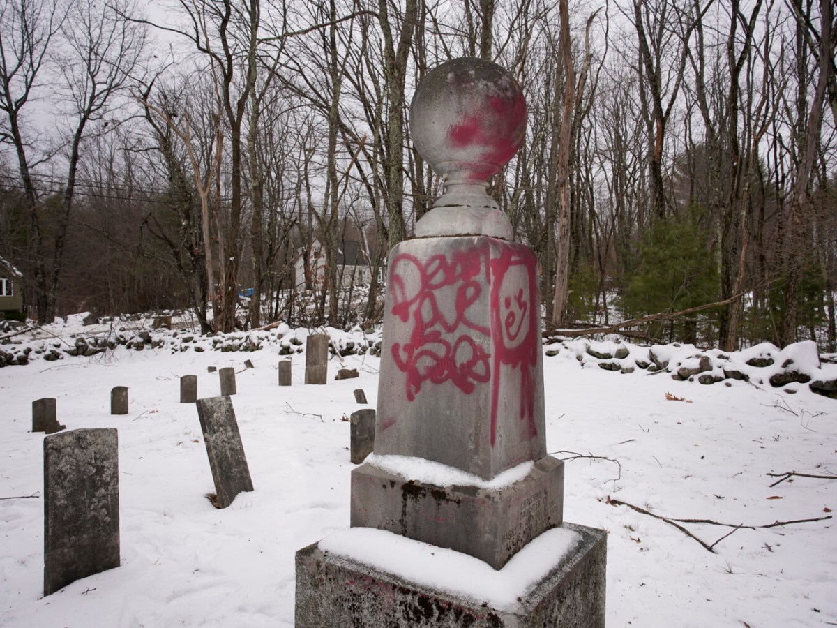 Profane words and images were found spray painted on 10 memorials dating back to the 1850s and ’60s, including six for children who died before they turned 13.