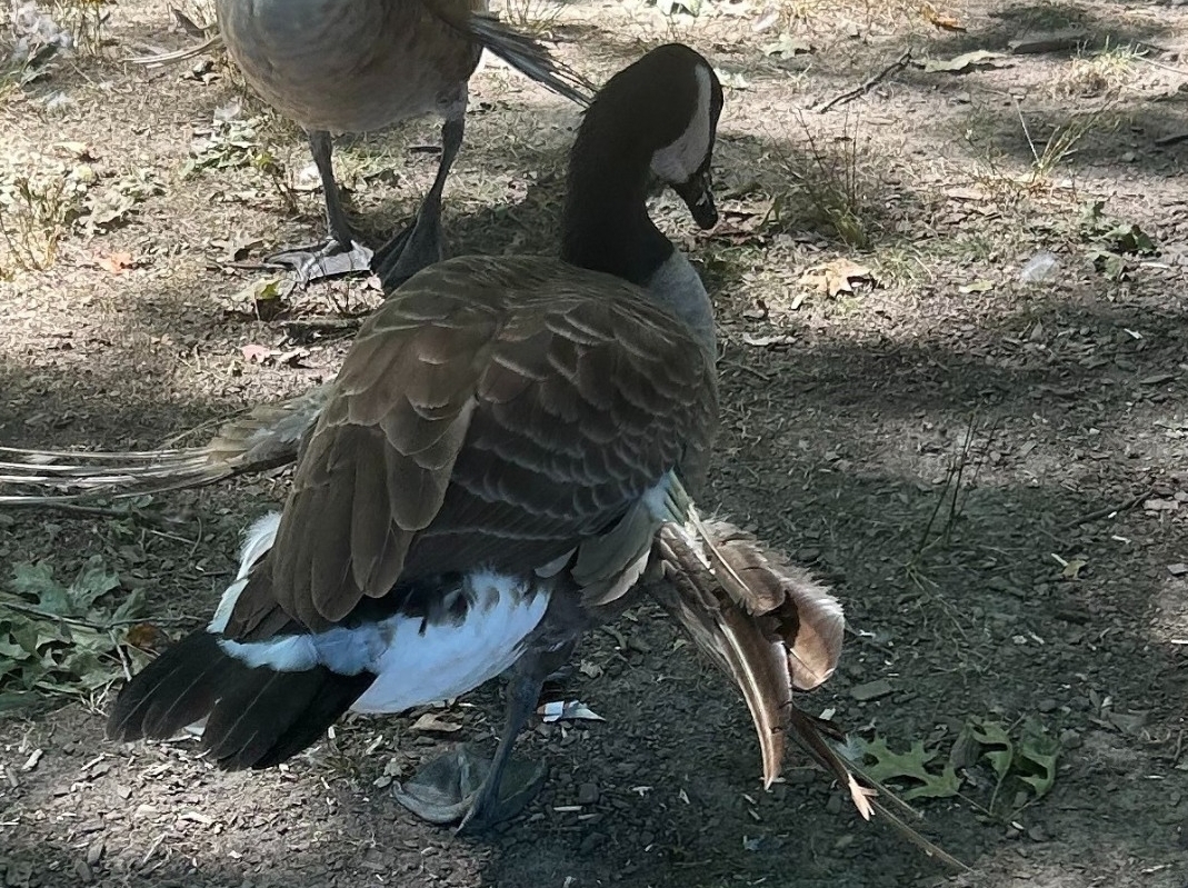 Some geese are suffering from a condition called ‘Angel Wing,’ which is a malformation of their wings caused by a high calorie diet – namely, things like bread.