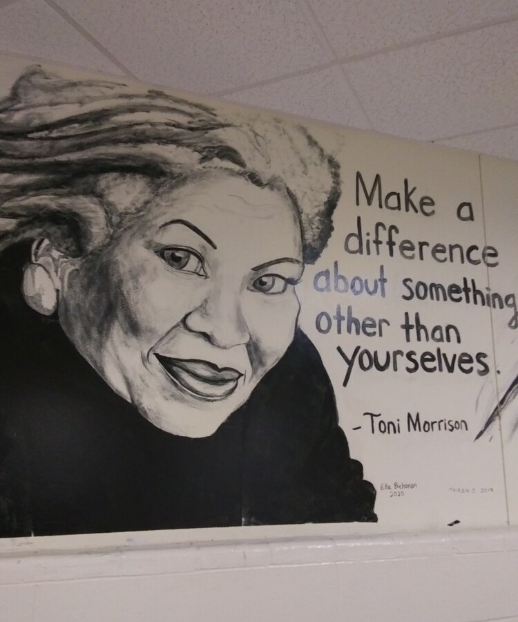 A Yarmouth High School senior creates a portrait of Pulitzer Prize-winning author Toni Morrison.